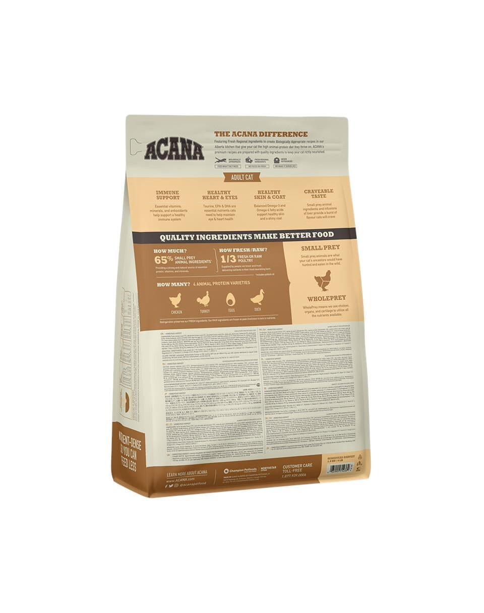 Acana Homestead Harvest est riche en viande de poulet, de dinde et de canard dans des proportions WholePrey. En plus de la viande de volaille, il contient également des organes et du cartilage pour nourrir naturellement votre chat.