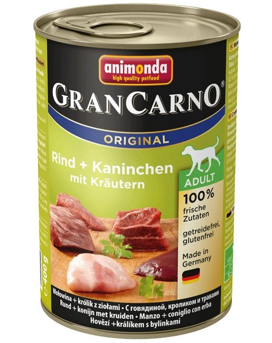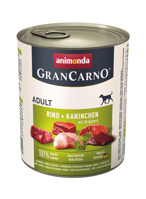 ANIMONDA Grancarno Adult est une nourriture à base de lapin et d'herbes conçu pour répondre aux besoins spécifiques des chiens adultes.