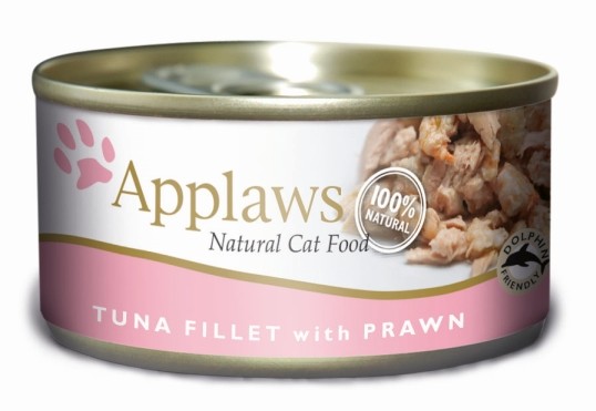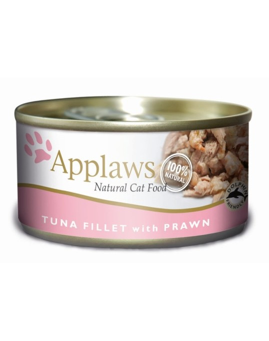 Filet de thon 52%, crevettes 23%, riz 1%, bouillon de poisson 24%. Sans additifs.