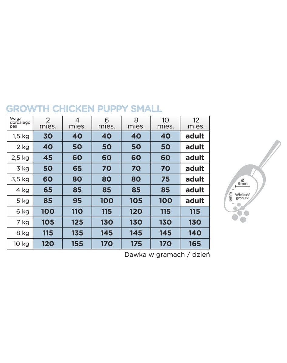 Arion Original Growth Chicken Puppy Small est un aliment complet pour chiots de petites races, à base de poulet frais. Sa recette mono-protéique sans gluten contient du poulet facile à digérer, des pré et probiotiques, ainsi qu'un niveau adéquat de vitamines et de minéraux.