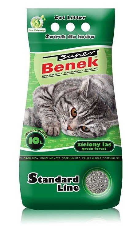 Litière Super Benek Green Forest avec un nouveau parfum rafraîchissant de pin, agréable pour les humains et accepté par les animaux. Litière particulièrement recommandée pour les chats de race ou domestiques. Le parfum a un effet légèrement stimulant. Recommandé pour les animaux de compagnie âgés ou à faible mobilité afin de les activer et de les inciter à bouger.