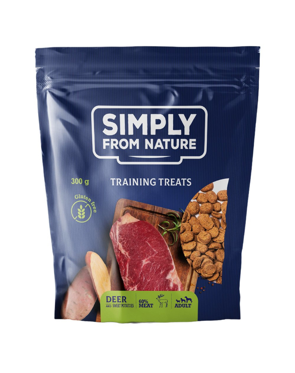 Les friandises de dressage Simply from Nature ne contiennent que les mêmes ingrédients naturels, sélectionnés pour leur valeur nutritionnelle et leur goût. Les collations sèches et de petite taille sont idéales pour une occasion unique. Ils contiennent beaucoup de protéines, qui donnent l'énergie si importante pendant l'entraînement. Les ingrédients comprennent 60,5 % de viande de cerf, ainsi que des fruits et des légumes, comme les ignames, qui, en plus d'apporter des glucides, contribuent à maintenir la saveur. L'huile de lin est une source d'acides gras. Les myrtilles veillent à la bonne santé de la vue des chiens et les graines de lin régulent le système digestif.