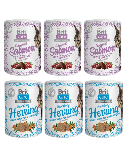 « BRIT Care Cat Snack Superfruits herring » : nourriture complémentaire, destinée aux chats stérilisés. Friandise croustillante à base d'hareng et de « SUPERFRUITS » – argousier. Ces friandises croustillantes attireront votre chat et l'inviteront à venir s'amuser avec vous.