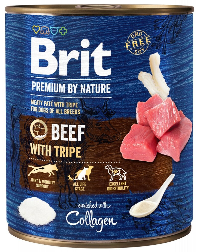 La recette est complète, à base de bœuf, avec l'ajout de poulet et d'abats. Elle fournit des protéines d'origine animale, contribuant ainsi à la bonne condition du chien. L'huile de saumon enrichit le goût, mais elle est surtout une source d'acides gras insaturés oméga, qui renforcent le système immunitaire et améliorent l'aspect de la peau et du pelage de votre chien.