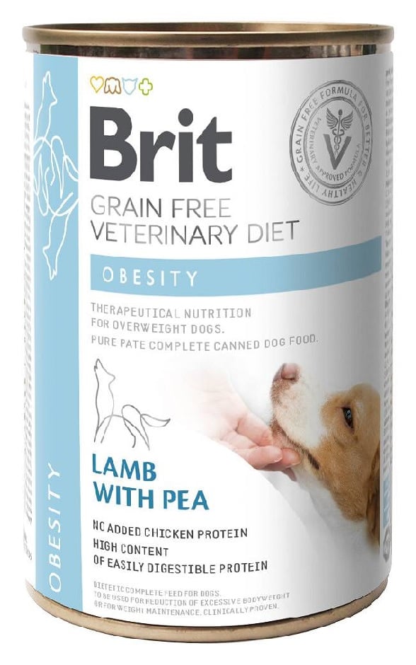 Nourriture vétérinaire complète à base d'agneau et de pois pour les chiens adultes en surpoids ou sujets à la prise de poids. L'alimentation aide à maintenir un poids corporel sain.