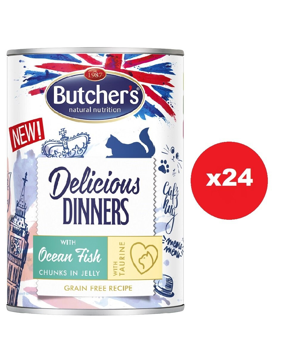 BUTCHER'S Delicious Dinners - nourriture pour chats, morceaux de poissons de mer en gelée - 24 x 400g