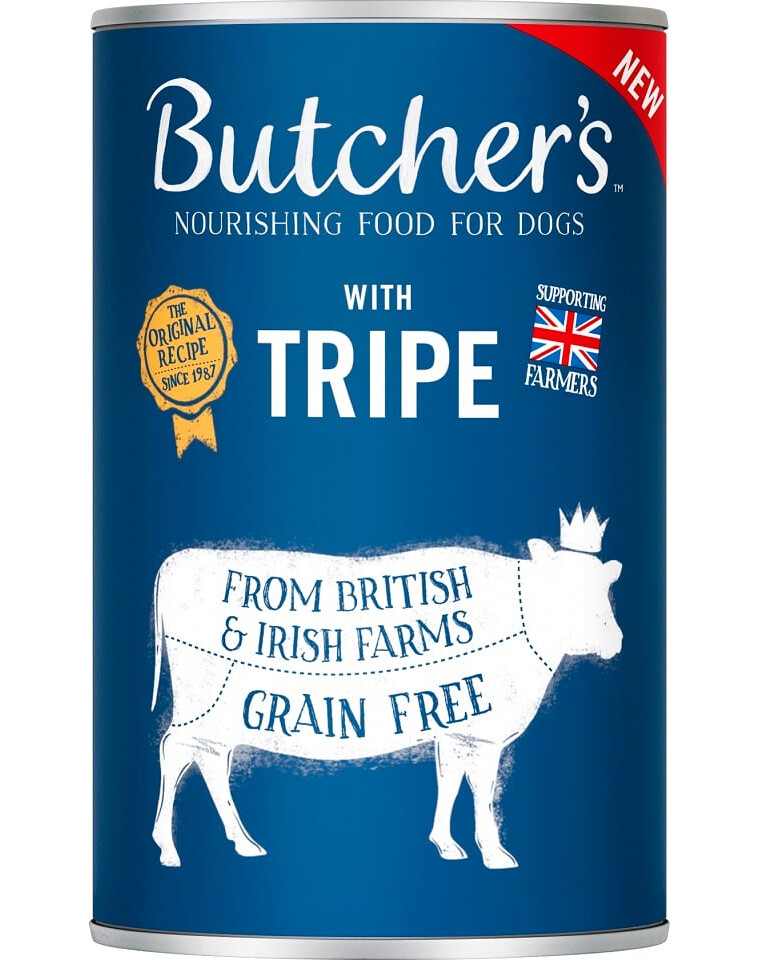 Butcher's Original Tripe est une gamme de nourriture complète enrichie en panse de bœuf, conçus pour répondre aux besoins quotidiens des animaux de compagnie. Tous les produits sont fabriqués à partir d'ingrédients naturels et sont présentés dans des emballages respectueux de l'environnement.