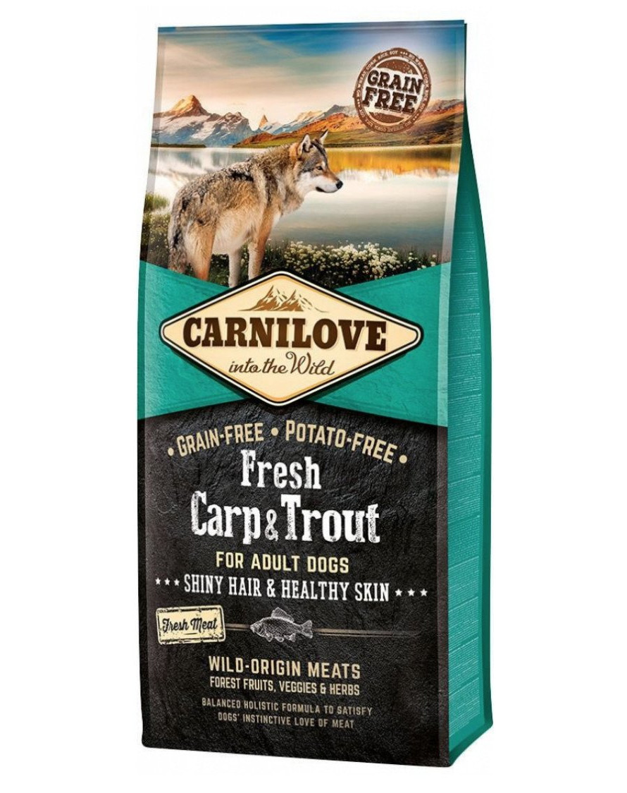 La gamme Fresh est basée sur la viande fraîche. La recette de cet aliment est basée sur le poisson, l'ingrédient principal étant la carpe fraîche, suivie de la truite et du saumon. La teneur élevée en poisson signifie que l'aliment est plein de protéines et de graisses nutritives, et contient beaucoup d'acides gras insaturés Oméga-3 et -6. Ceux-ci soutiennent les systèmes immunitaire et nerveux, maintiennent un beau pelage et améliorent le teint de la peau. Le poisson a un facteur allergène réduit, de sorte que l'aliment peut être donné aux chiens ayant une tendance aux allergies cutanées ou alimentaires. L'aliment sans céréales est doux, facilement digestible et assimilable pour les chiens.