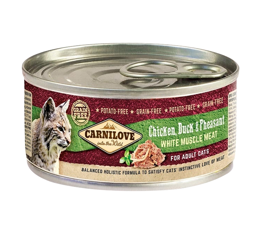 CARNILOVE CHAT POULET, CANARD & FAISAN. PÂTEE COMPLET, POULET, CANARD ET FAISAN POUR CHATS ADULTES.