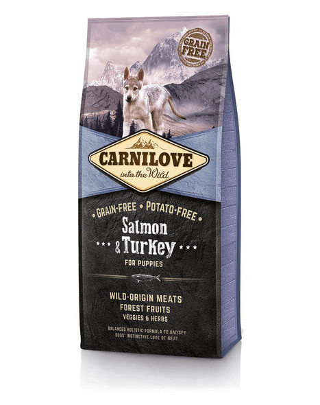 Adapté aux besoins nutritionnels accrus des jeunes organismes. Ne contient ni céréales ni pommes de terre pour ne pas irriter l'estomac délicat des chiots. Contient 45 % de farines de viande - de saumon et de dinde. Ils contiennent des niveaux élevés d'oligo-éléments, tels que le zinc, ainsi que des vitamines B, qui sont recommandées pour le bon fonctionnement du cerveau et des muscles. Le saumon (30 %) et l'huile de saumon sont de riches sources d'acides gras insaturés, qui ont un effet positif sur le développement du système nerveux et du système immunitaire, et qui contribuent à la beauté de la peau et du pelage du chien. Les légumes, les fruits et les herbes complètent le tout en apportant des antioxydants, des vitamines et des minéraux naturels. Tout ce dont votre chien a besoin pour sa croissance et son développement pendant la première année de sa vie.