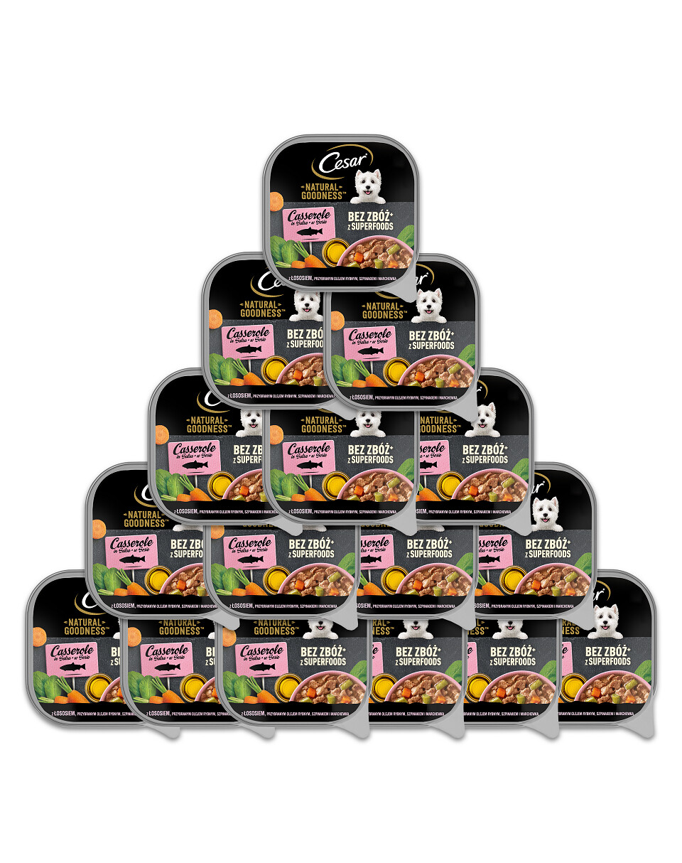 CESAR tacka 16x100 g mokra karma pełnoporcjowa dla dorosłych psów z łososiem wzbogacony olejem rybnym, szpinakiem i marchewką w sosie