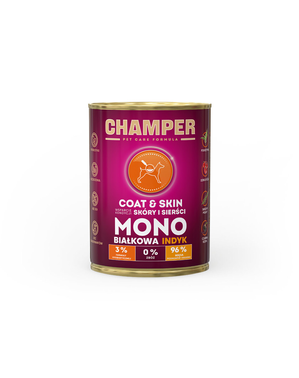 CHAMPER Coat Skin nourriture pour chiens à base de dinde monoprotéine 400 g