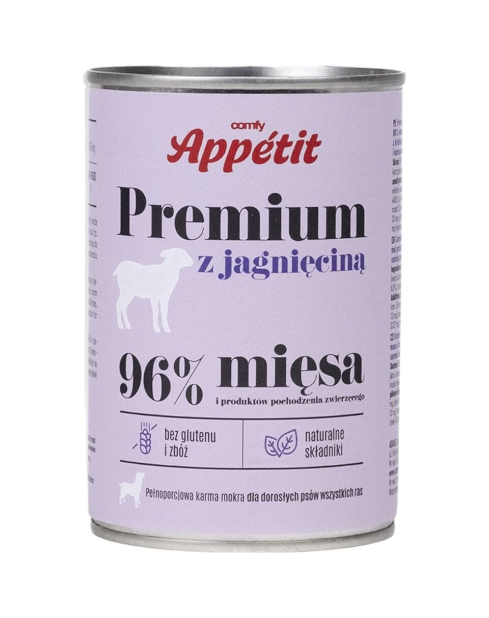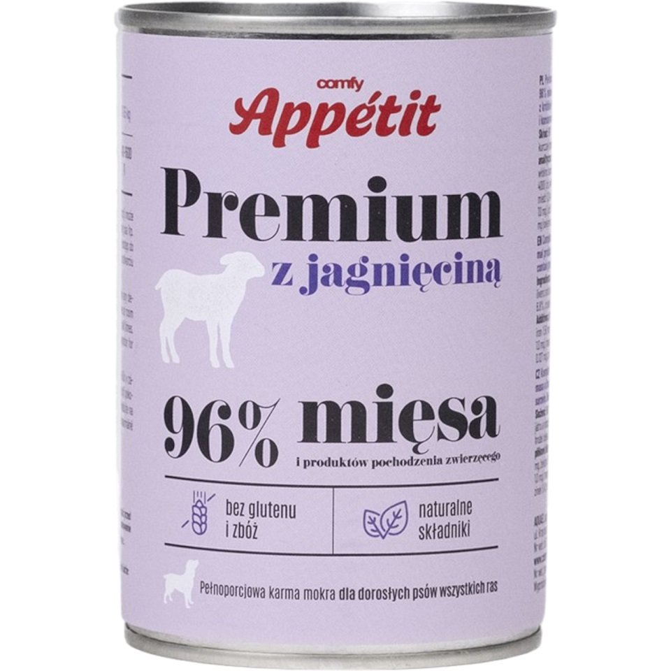 Comfy Appetit PREMIUM est une nourriture humide complète pour chiens adultes à base d'ingrédients naturels.