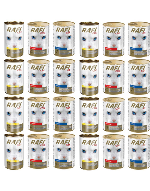 RAFI Adult Mix de viandes et poisson 24x415 g nourriture humide pour chats. L'ensemble comprend :