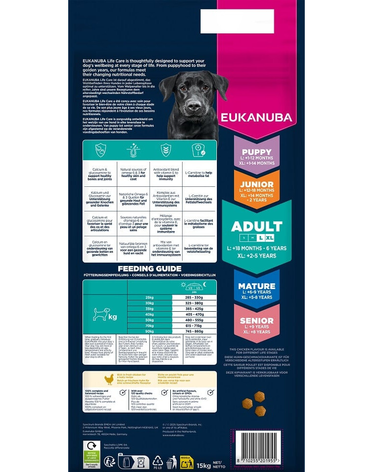 EUKANUBA Adult Large Breeds Chicken 15 kg sucha karma dla psów dużych ras bogata w świeżego kurczaka