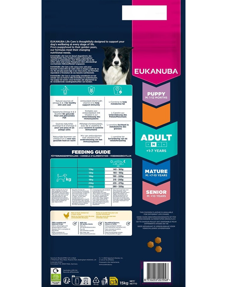 EUKANUBA Adult Medium Breeds Chicken 15 kg sucha karma dla psów średnich ras bogata w świeżego kurczaka