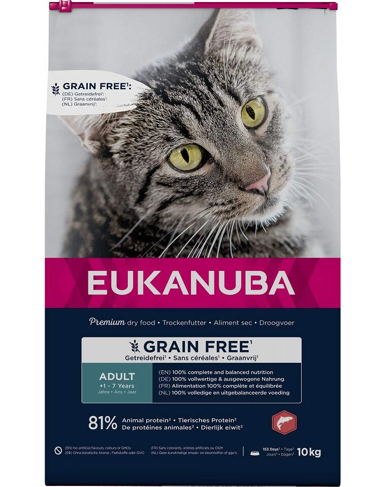 EUKANUBA Grain Free Adult - Saumon sans céréales pour chats adultes - 10 kg