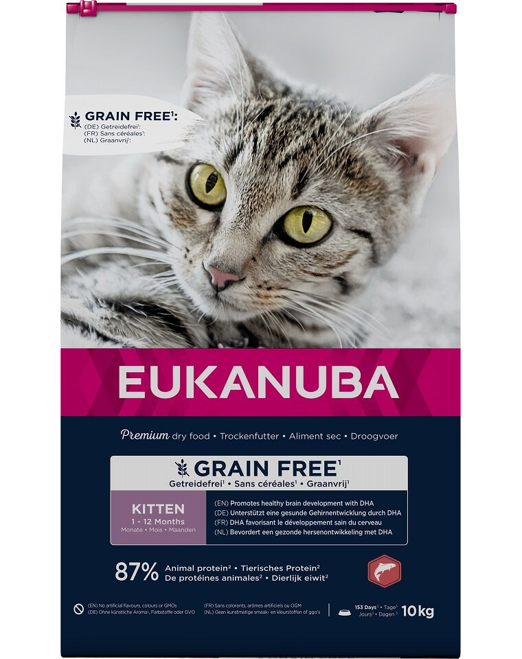 EUKANUBA Grain Free Kitten - Saumon sans céréales pour les chatons en croissance - 10 kg