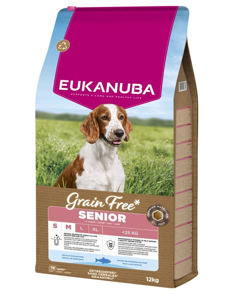 EUKANUBA Grain Free Senior Small Medium Ocean Fish 12 kg bezzbóżowa karma dla starszych psów małych i średnich ras z rybą