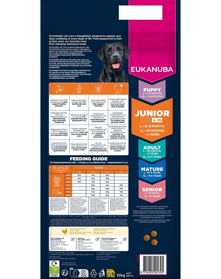EUKANUBA Junior Large Breeds Chicken 15 kg sucha karma dla młodych psów dużych ras bogata w świeżego kurczaka