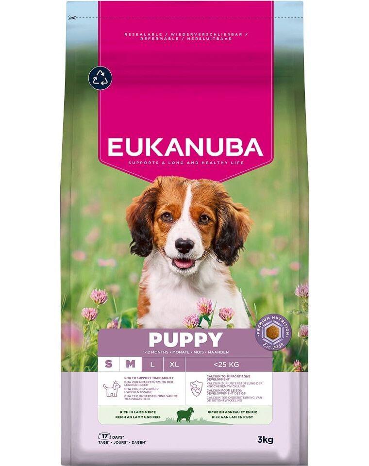EUKANUBA Puppy Small Medium Breeds Lamb Rice 3 kg sucha karma dla szczeniąt ras małych i średnich bogata w jagnięcinę i ryż