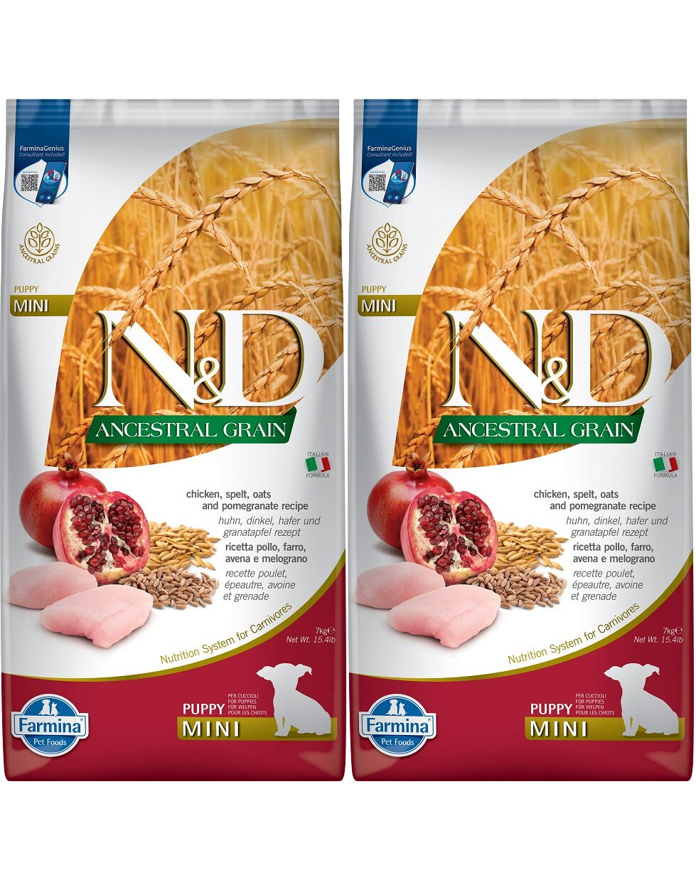 Viande fraîche de poulet (20%), viande séchée de poulet (20%), épeautre (10%), avoine (10%), graisse de poulet, œufs entiers séchés, hareng frais, hareng séché, pulpe de betterave séchée, huile de poisson (de hareng), fibres de pois, carottes séchées, luzerne séchée, cartilage de poulet (source de glucosamine et de sulfate de chondroïtine), inuline, fructo-oligosaccharides, extrait de levure (source de mannano-oligosaccharides), fruit de grenade séché (0.5%), pomme séchée, épinards séchés, plantain (0,3%), orange séchée, myrtilles séchées, chlorure de sodium, levure de bière séchée, racine de curcuma (0,2%).