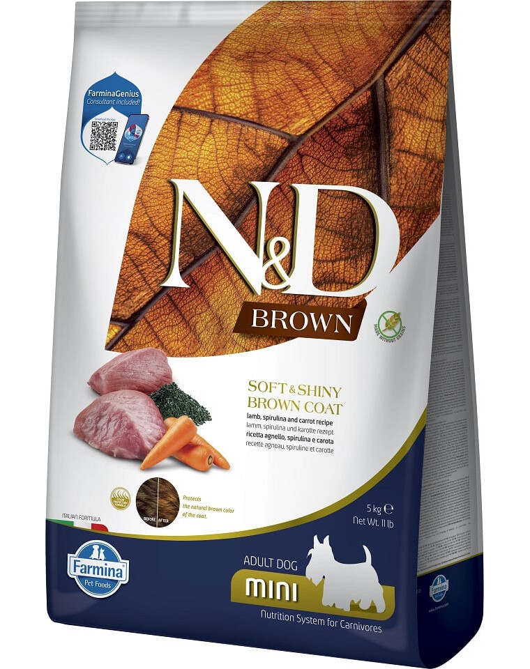 FARMINA N&D Brown Dog Adult Mini Lamb, Spirulina, Carrot 5 kg
