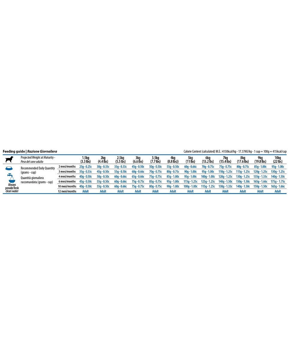 VALEUR ÉNERGÉTIQUE : EM Kcal/Kg 4150 - Mj/Kg 17.36
