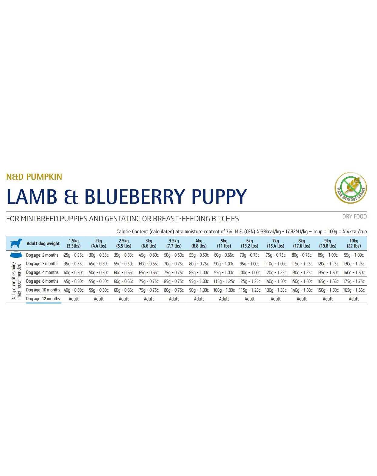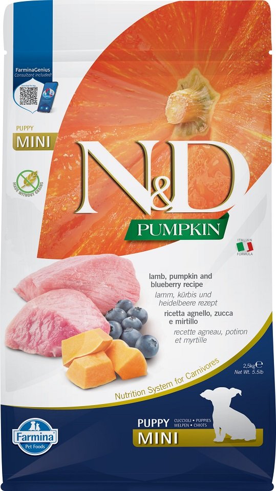 Une nourriture complète pour chiots et chiennes en gestation ou en lactation, à base d'agneau, de citrouille et de baies ajoutées.