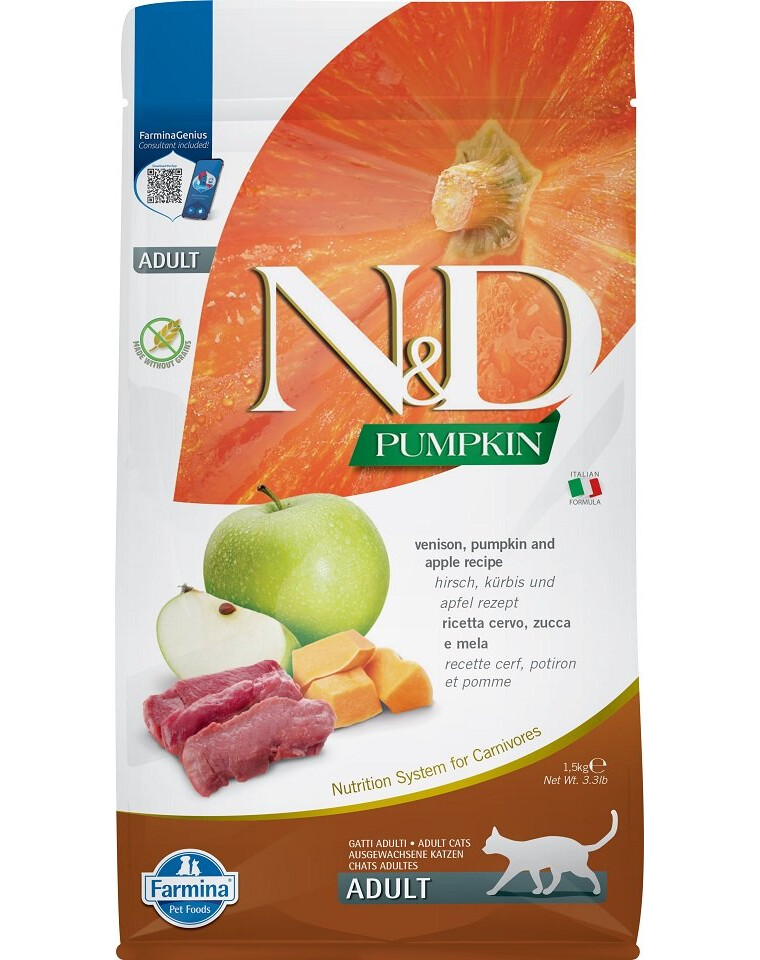 La nourriture est enrichie d'herbes, de fruits et de légumes. Les céréales, difficiles à digérer et mal tolérées par les chats, ont été remplacées par le potiron, qui présente un faible indice glycémique et est source de nombreuses vitamines. Le potiron est riche en vitamine A et en antioxydants, il soutient le système immunitaire et cardiovasculaire et a des effets anti-inflammatoires et antiparasitaires.