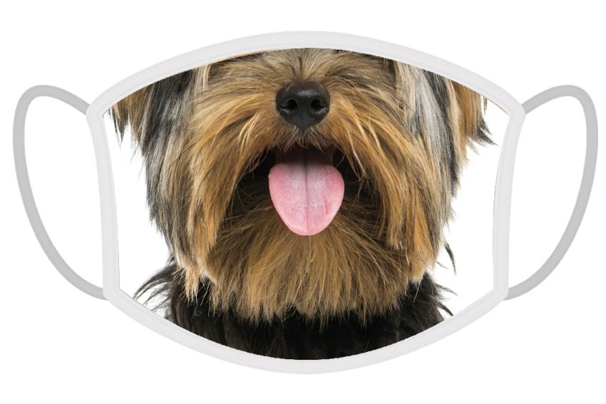 Masque de protection par sublimation avec motif de chien Yorkshire terrier.