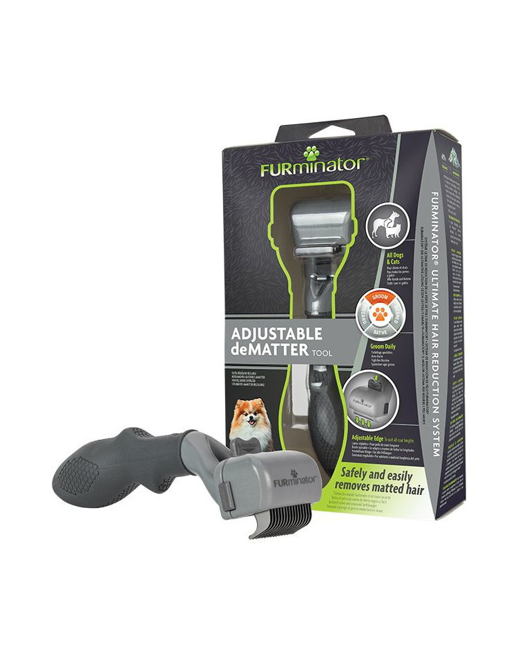 Le feutre coupe parfaitement et facilement les nœuds pour les enlever ou les rendre plus faciles à peigner. Les dents sont profilées et toute la tête de l'outil s'adapte au corps de l'animal.