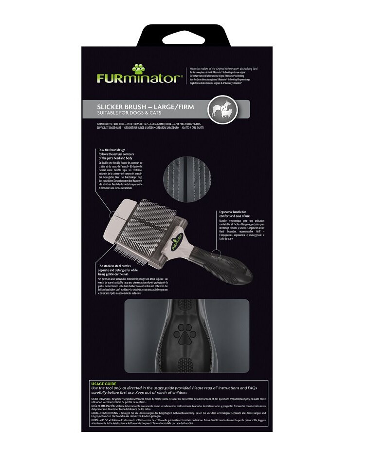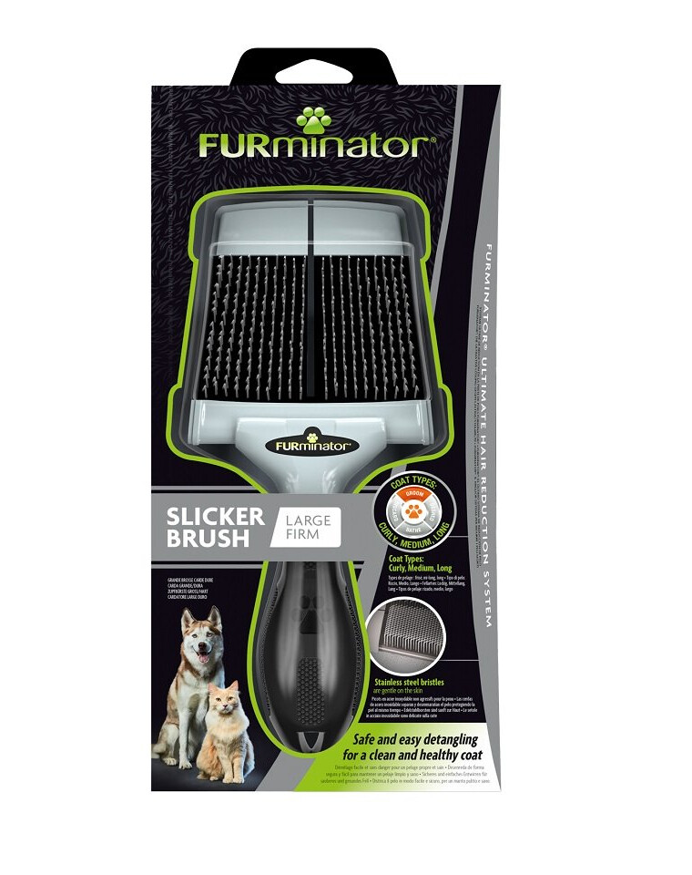 Grande brosse à lisser à double face avec des aiguilles dures. Recommandé pour les animaux de compagnie aux poils mi-longs, bouclés et longs.