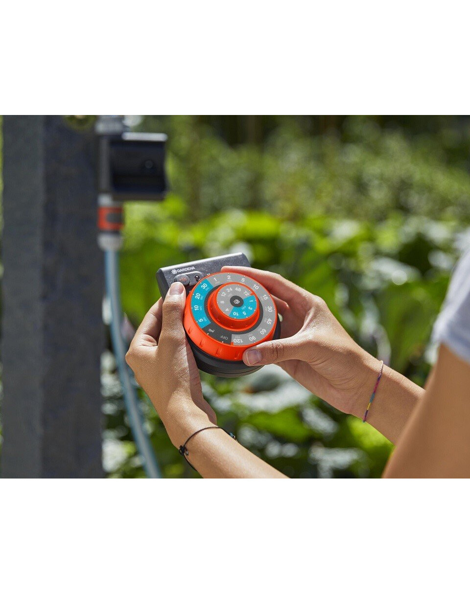Le programmateur d'irrigationEasyPlus deGARDENA permet de contrôler facilement et automatiquement l'arrosage du jardin. Le programmateur est alimenté par des piles, se branche directement sur le robinet et est commandé par deux cadrans. Il existe un choix de 60 programmes avec différentes durées et fréquences d'arrosage. La fonction de démarrage différé d'une heure active le système d'arrosage ou de goutte-à-goutte à l'heure souhaitée. Le meilleur moment pour arroser le jardin est tôt le matin ou en fin d'après-midi. L'unité de commande est résistante aux intempéries et peut être détachée du reste de l'unité pour faciliter la programmation du contrôleur. Options de commande supplémentaires pour les rideaux d'eau GARDENA : refroidissement optimal de l'air grâce à des impulsions courtes et fréquentes.
