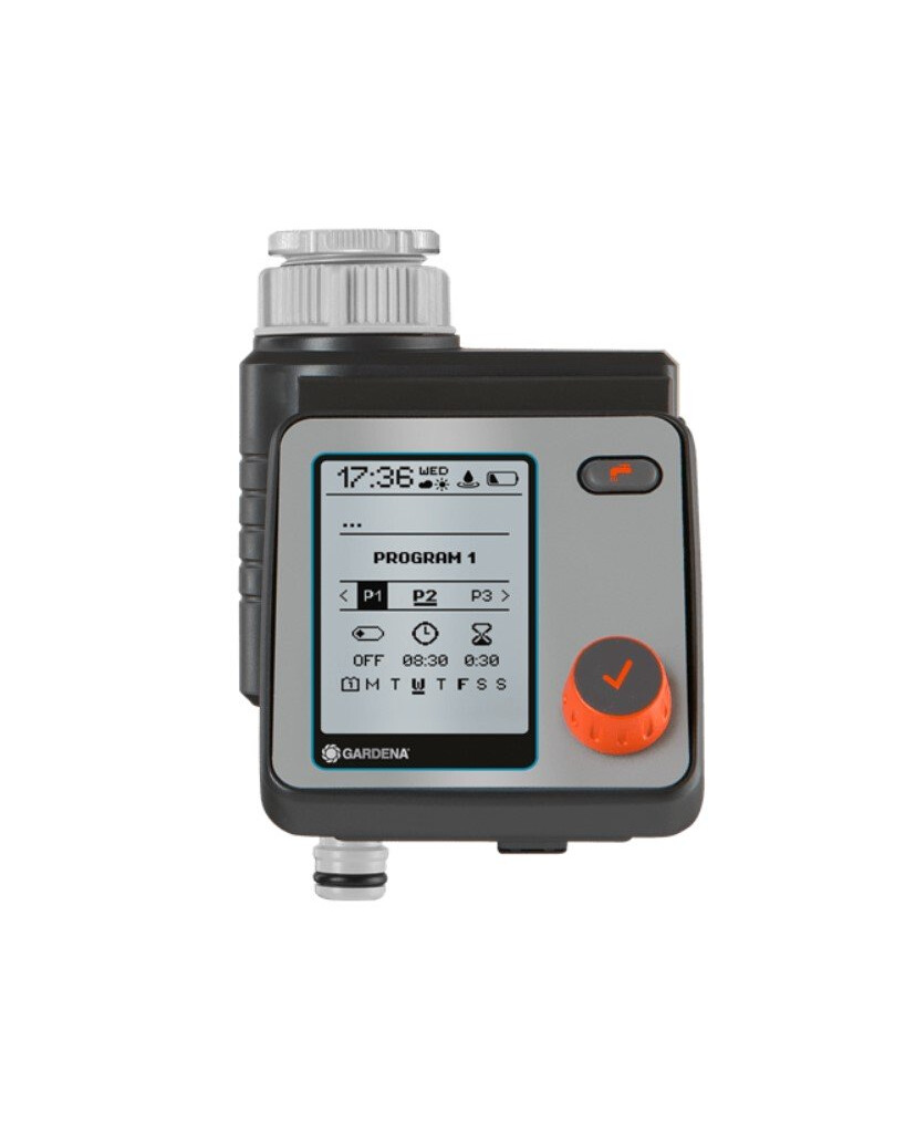 L'appareil permet un arrosage individuel et économe en eau. Il est possible de programmer jusqu'à six horaires différents et indépendants. Il est alimenté par une batterie. Il peut être raccordé directement au robinet et est commandé par un cadran pratique avec une fonction de bouton-poussoir pour valider la sélection. Il est équipé d'un écran clair qui affiche tous les réglages. Le menu peut être affiché en 10 langues. L'unité de commande est résistante aux intempéries et peut être détachée du reste de l'unité pour une programmation plus aisée du contrôleur. L'utilisateur peut modifier les durées d'arrosage pour tous les programmes à la fois. La fonction "Rain Off" permet d'arrêter l'arrosage en cas de mauvais temps. Possibilité de connecter une sonde d'humidité du sol GARDENA.