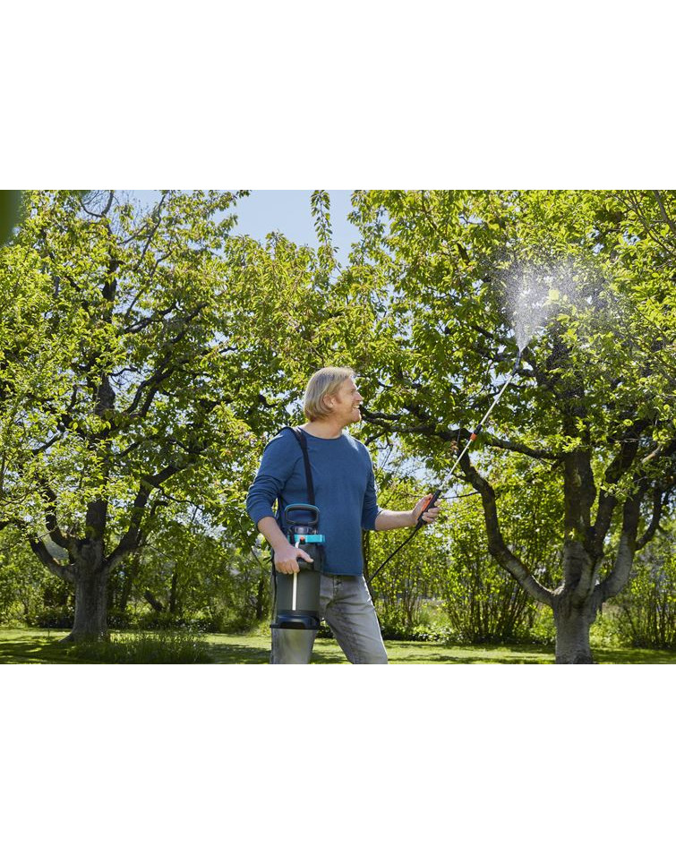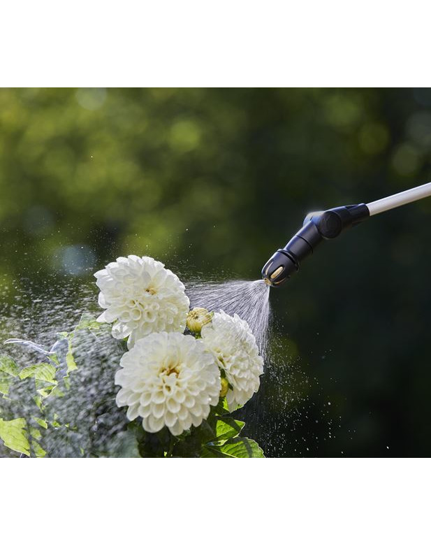 La sangle de transport rembourrée, la lance télescopique, la buse pivotante, la buse de pulvérisation plate supplémentaire et les poignées ergonomiques de la pompe et de la lance rendent son utilisation très confortable.