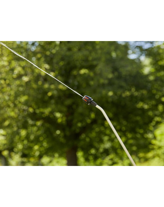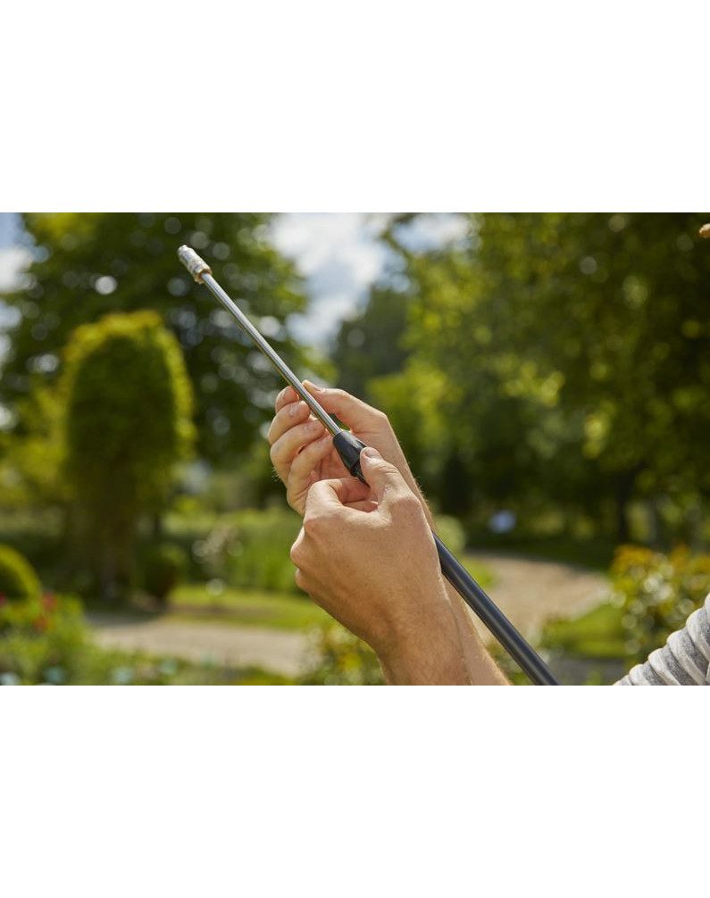 La lance de pulvérisation télescopique simplifie le travail car, une fois dépliée, la portée du pulvérisateur est accrue, ce qui lui permet d'atteindre les parties les plus éloignées des arbres.