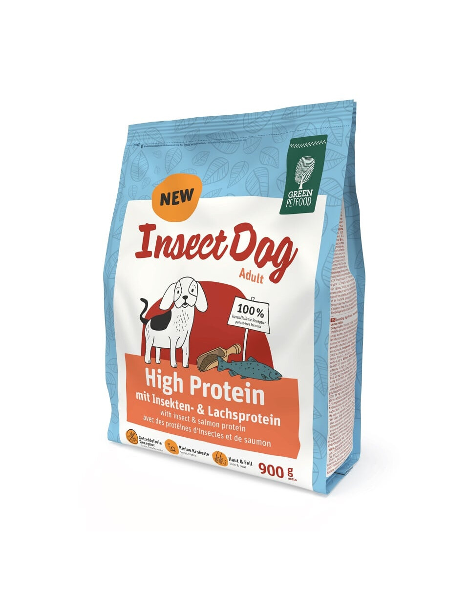 Un bol de protéines pour votre chien - c'est notre InsectDog High Protein ! La formule sans céréales sous forme de très petites croquettes convient également aux chiens adultes de petite taille, grâce à des ingrédients soigneusement sélectionnés qui favorisent une peau saine et un pelage brillant. Au lieu de pommes de terre, nous misons sur les insectes et les protéines de saumon : vos amis à quatre pattes seront des pionniers, car les insectes sont la source de protéines durable de l'avenir !