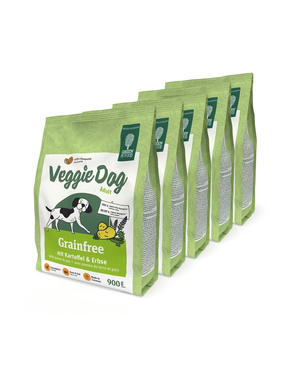 Tant pour les chiens qui réagissent de manière allergique aux protéines animales que comme aliment complet quotidien : Green Petfood VeggieDog. La recette végétarienne sans céréales de VeggieDog Grainfree fournit aux chiens adultes tous les nutriments dont ils ont besoin. Grâce à des acides gras complets, un mélange équilibré de vitamines, du zinc et du cuivre, votre chien ne manquera de rien ! Les sources d'énergie de cet aliment végétarien de première qualité sont les pommes de terre et les pois de qualité supérieure. Que vous soyez animé par des convictions éthiques ou que votre chien souffre d'une intolérance aux protéines animales : avec VeggieDog Grainfree, votre compagnon à quatre pattes peut contribuer chaque jour à un monde plus durable !