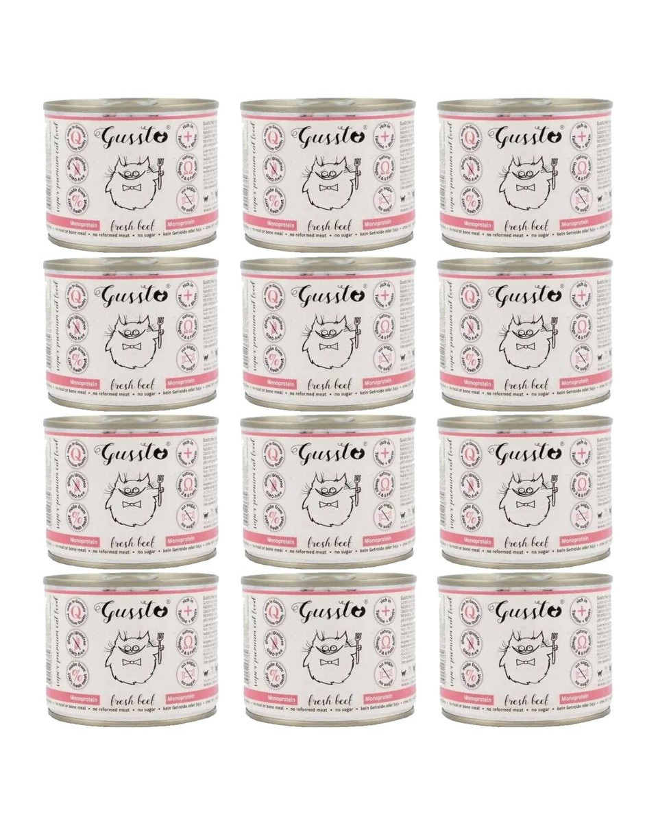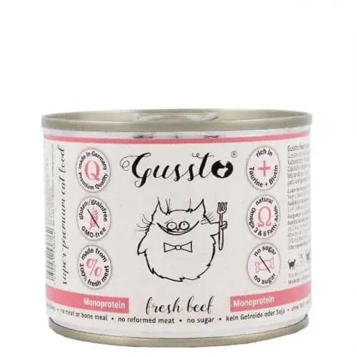 Cette nourriture est fabriquée à partir d'ingrédients de la plus haute qualité et contiennent 70 % de viande saine et d'abats de bœuf. Grâce à sa composition simple, les besoins nutritionnels des chats en tant qu'espèce sont entièrement couverts. Ce produit ne contient pas de céréales ni d'autres ingrédients intolérés par les chats. Le bouillon propriétaire de la viande augmente l'appétence et donne à la nourriture une texture caractéristique dont les chats raffolent. L'huile de chardon augmente le caractère gras, de sorte que même les chats difficiles l'apprécieront.