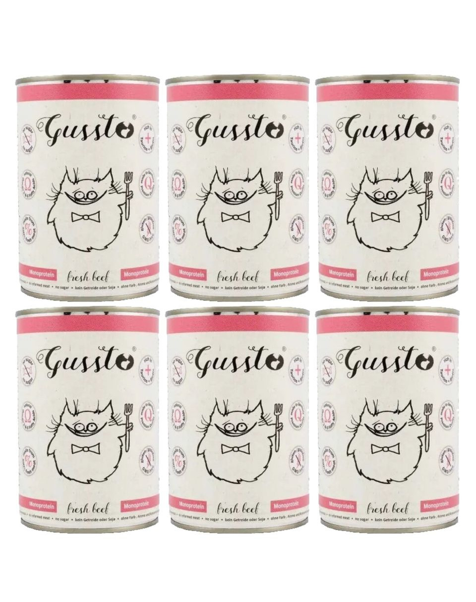 Cette nourriture est fabriquée à partir d'ingrédients de la plus haute qualité et contiennent 70 % de viande saine et d'abats de bœuf. Grâce à sa composition simple, les besoins nutritionnels des chats en tant qu'espèce sont entièrement couverts. Ce produit ne contient pas de céréales ni d'autres ingrédients intolérés par les chats. Le bouillon propriétaire de la viande augmente l'appétence et donne à la nourriture une texture caractéristique dont les chats raffolent. L'huile de chardon augmente le caractère gras, de sorte que même les chats difficiles l'apprécieront.