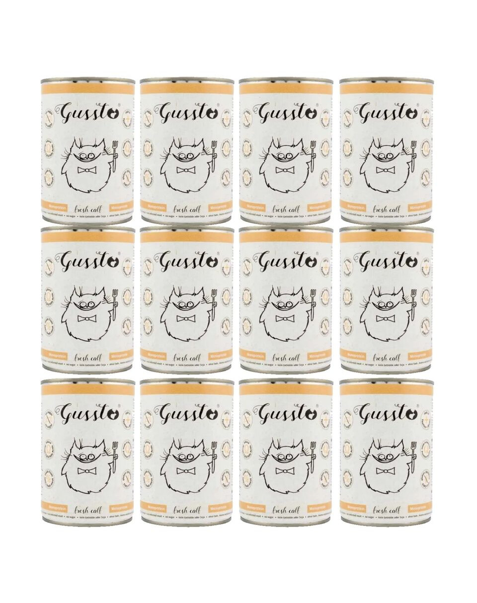 Cette nourriture est fabriqué à partir d'ingrédients de la plus haute qualité et contiennent 70% de viande saine et d'abats de veau. Grâce à sa composition simple, les besoins nutritionnels des chats en tant qu'espèce sont entièrement couverts. Cette nourriture ne contient pas de céréales ni d'autres ingrédients intolérés par les chats. Le bouillon propriétaire de la viande augmente l'appétence et donne à la nourriture une texture caractéristique dont les chats raffolent. L'huile de chardon augmente le caractère gras, de sorte que même les chats difficiles l'apprécieront.