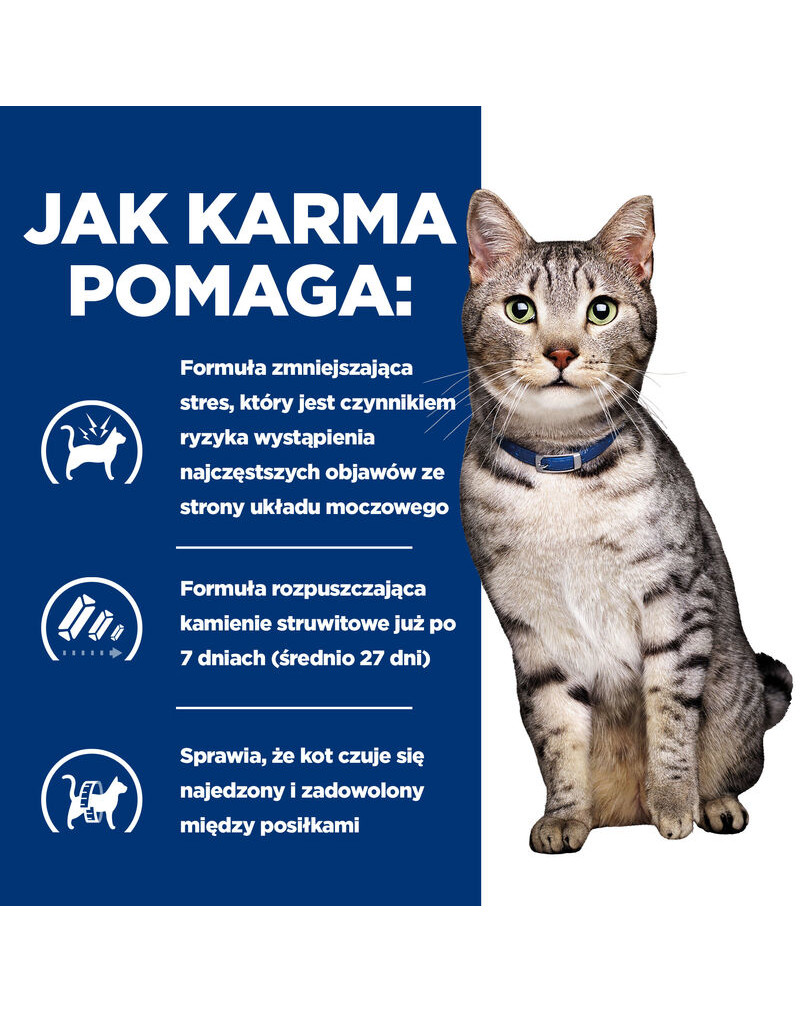 Les nutritionnistes et les vétérinaires de Hill's ont développé les aliments secs Prescription Diet c/d Multicare Stress + Metabolic Weight pour chats comme un aliment clinique spécifiquement formulé pour aider à gérer la santé des voies urinaires et le poids du chat.Il a été démontré que les croquettes pour chats c/d Multicare Stress + Metabolic Weight réduisaient de 89 % l'incidence des symptômes urinaires les plus courants, réduisaient le poids corporel de 11 % sur 60 jours et contiennent des ingrédients qui aident à gérer le stress.