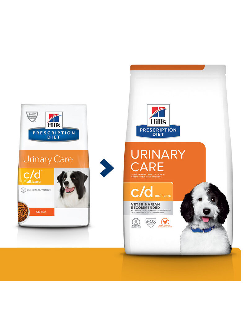 Les calculs urinaires sont des amas de cristaux de certains minéraux qui se combinent dans la vessie. Ils peuvent causer de l'inconfort et entraîner des problèmes plus graves nécessitant une attention vétérinaire. Les nutritionnistes et les vétérinaires de Hill's ont mis au point l'aliment Prescription Diet c/d Multicare de qualité clinique spécifiquement pour favoriser la santé des voies urinaires de votre chien et réduire le risque de calculs de struvite et d'oxalate de calcium. Ces aliments secs contiennent du poulet et ont un goût délicieux dont votre chien raffolera.
