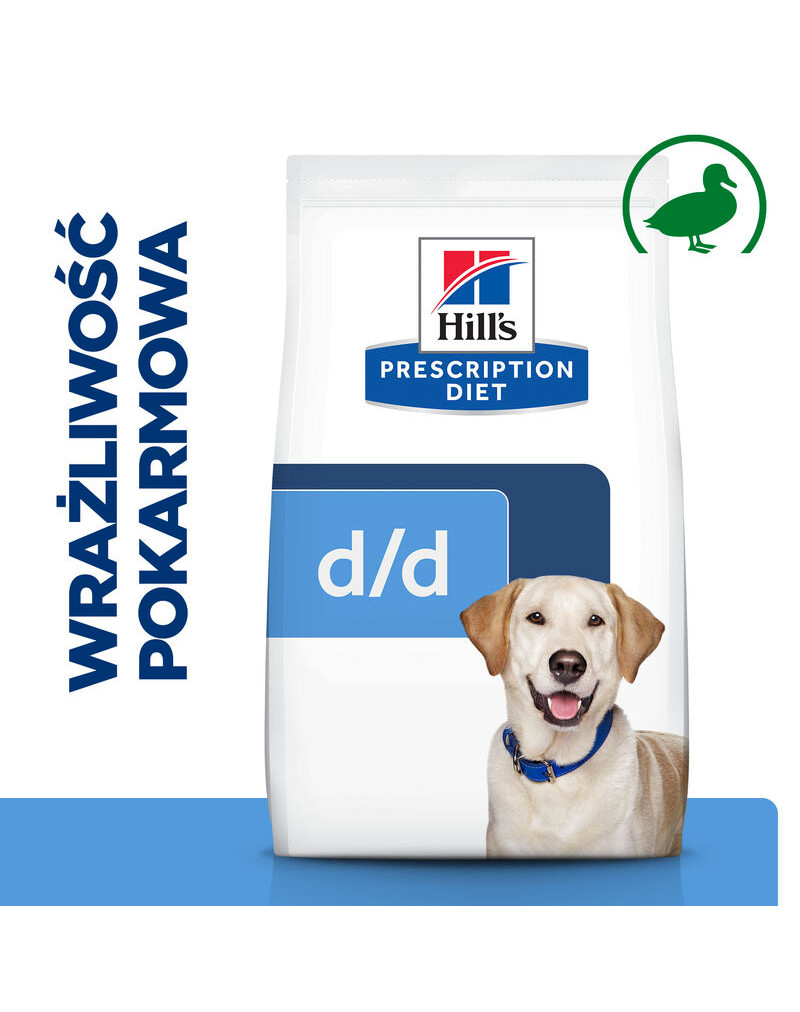 Prescription Diet™ Canine d/d™ Duck and Rice est formulé pour la gestion diététique des chiens souffrant de tout trouble dermatologique et de vomissements/diarrhées causés par une allergie.