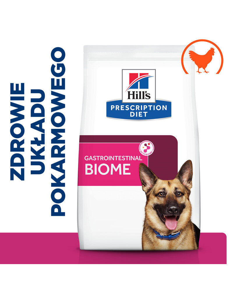 Les croquettes pour chien Hill's PRESCRIPTION DIET Gastrointestinal Biome au poulet est une nourriture diététique complete hautement assimilable pour aider à réduire les symptômes de la mauvaise digestion et compenser les effets d'une digestion difficile chez les chiens adultes.