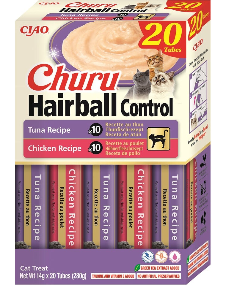 INABA Churu Cat Hairball 20x14g thon et poulet crémeux, un délice pour les chats