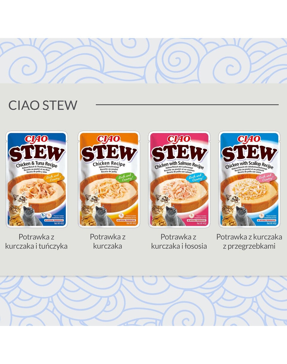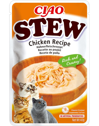 INABA CIAO Stew est un aliment complémentaire pour chats avec du poulet en sauce 40g.