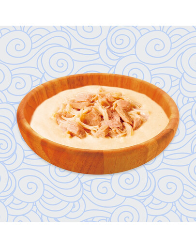 Ingrédients: bouillon aromatisé à la coquille Saint-Jacques (62,5%), poulet (33,5%), tapioca (séché).