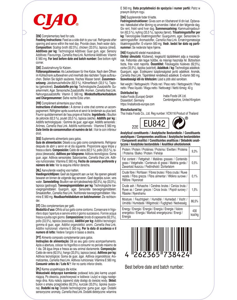 INABA CIAO Plat de poulet à l'étouffée 40g
